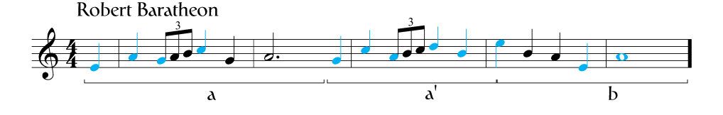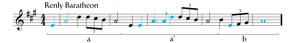 Let’s take the Baratheon leitmotif as an example. This two-note theme represents House Baratheon. It is comprised of a short note, usually on the upbeat, followed by a longer note a perfect fourth up, usually on the downbeat. Now, this doesn’t mean that every time two notes a perfect fourth apart show up it is a reference to House Baratheon; there are other aspects that need to be taken into consideration like the instrument used, the tempo, and the prominence of the notes in the overall melody. Let’s compare Robert’s and Renly’s theme to see how the leitmotif plays a role in both identifying the characters and how we can tell them apart.
